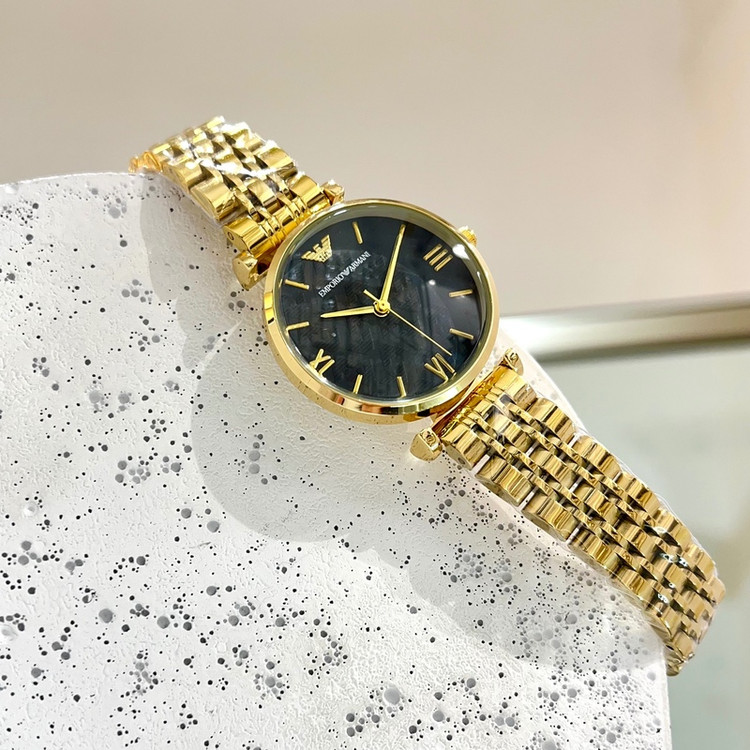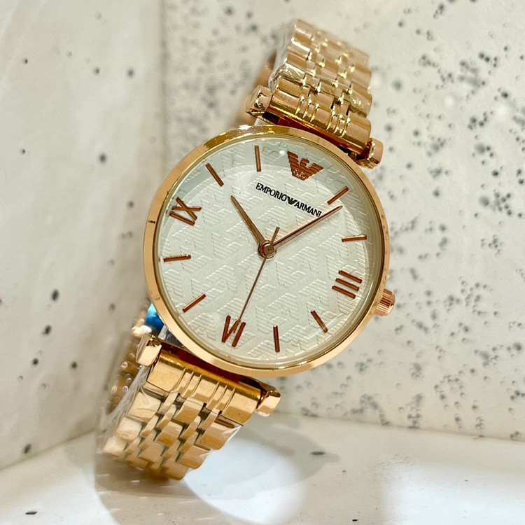 ساعت زنانه امپریو آرمانی در دو رنگ بند خاص طلایی و رزگلد می باشد. شیشه این مدل بسیار با کیفیت و از جنس سافایر کریستال می باشد. قفل پروانه ای این مدل باعث راحتی شما در پوشیدن ساعت میشود. موتور این مدل ساخت شرکت میوتای ژاپن بوده و از بهترین های کوارتز می باشد که از این بابت هم خیال شما را راحت میکند.