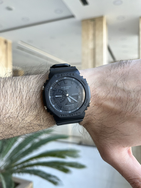 ساعت جیشاک G-Shock مدل ga-2100 فول مشکی در فروشگاه موجود می باشد. این مدل دارای ساعت جهانی بوده و حدود 50 منطقه زمانی از جمله ایران را پوشش می دهد. همچنین این مدل دارای آلارم، تایمر، روز های هفته، کورنومتر، تاریخ میلادی و چندین ویژگی شگفت آور دیگر است. بند پی یو، جلوه ای اسپورت به ساعت بخشیده است. این مدل مقاوم دربرابر آب است و علاوه بر لایت(چراغ صفحه) عقربه های شب نما نیز دارد. این ساعت بالاترین کیفیت ساخت (شرکتی +++A) را در کنار موتور باتری خور ساخت ژاپن اصلی و بدنه کربن مقاوم ضدخش و شیشه معدنی داراست که باعث شده یکی از پرفروش ترین مدل های حال حاضر بازار باشد.
