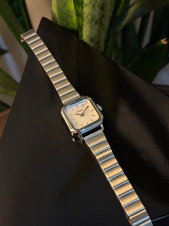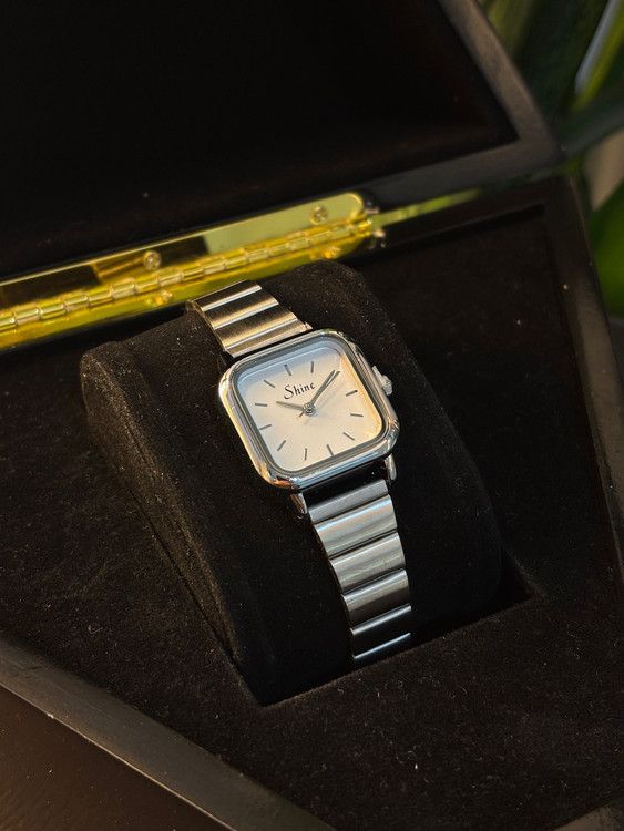 این مدل ساعت دخترانه از برند شاین با صفحه مربعی شکل، ظاهری مینیمال به خود گرفته و قابل ست کردن با هر تیپ و استایلی می باشد.