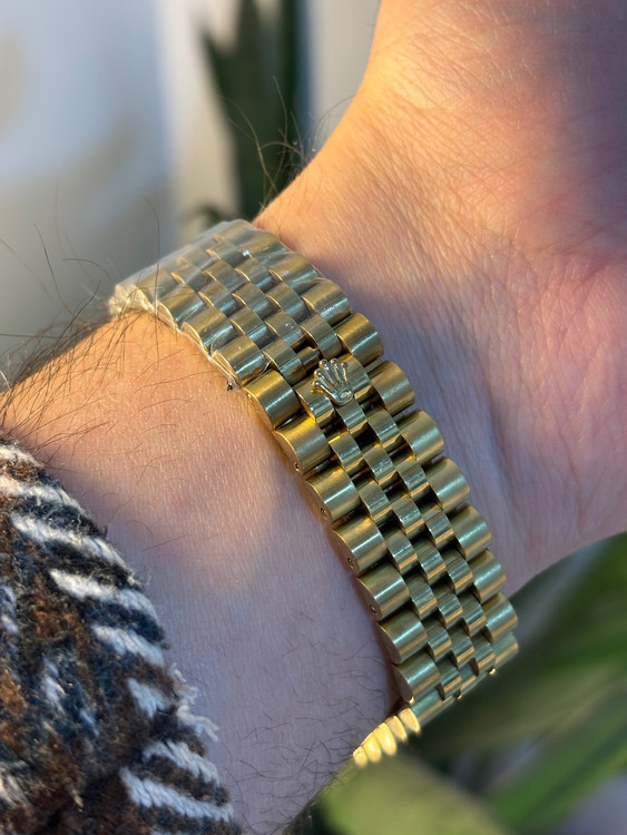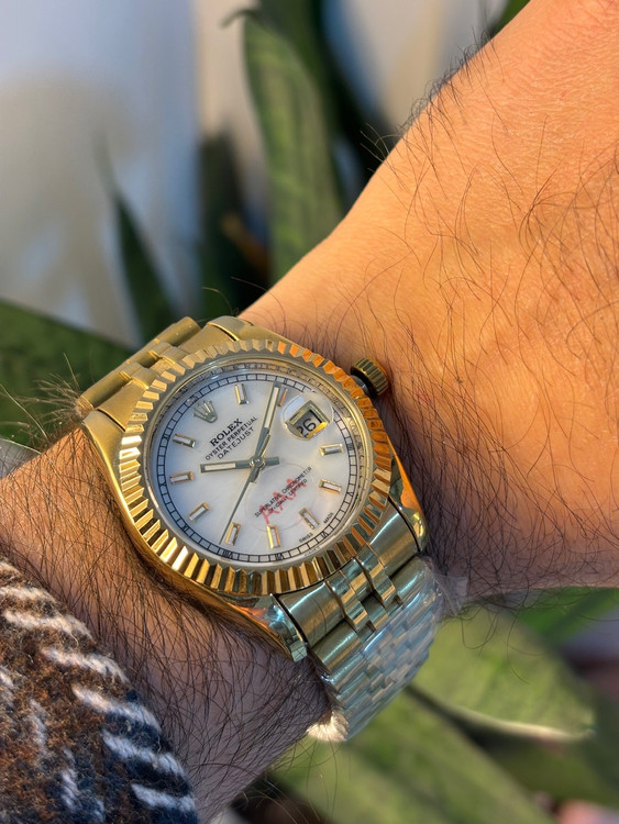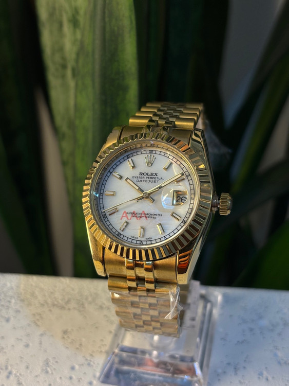 ساعت رولکس دیت جاست مردانه با بند طلایی و صفحه صدفی در بالاترین کیفیت AAA فول گرید و با صفحه جدید در فروشگاه موجود می باشد. موتوراین مدل ساخت شرکت میوتا ژاپن بوده و این ساعت دارای دسته کوک پیچی بوده که باعث افزایش مقاومت دربرابر آب می شود. حک آرم رولکس روی دسته کوک، قفل کلیپسی تاجی( اصلی رولکس ) و بند جوبیلی رولکس در کنار هم باعث هرچه زیباتر شدن این ساعت شده اند. ضمنا این مدل مانند بقیه مدل های دیت جاست دارای تقویم روزشمار می باشد.
