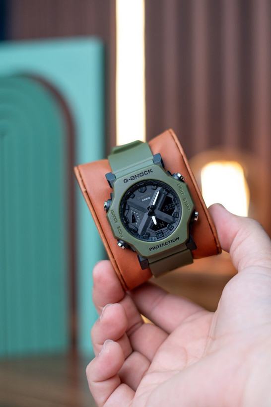ساعت جیشاک G-Shock مدل ga-2300 سبز ارتشی در فروشگاه موجود می باشد. این مدل نسخه اقتصادی جیشاک می باشد که میتوانید با قیمت مناسب آن را خریداری کنید.این مدل دارای آلارم، روز های هفته، کورنومتر، تاریخ میلادی و چندین ویژگی شگفت آور دیگر است. بند پی یو، جلوه ای اسپورت به ساعت بخشیده است. این مدل در حد شستن دست دربرابر آب مقاوم است و علاوه بر لایت(چراغ صفحه) عقربه های شب نما نیز دارد و دارای موتور باتری خور است که باعث شده یکی از پرفروش ترین مدل های حال حاضر بازار باشد.