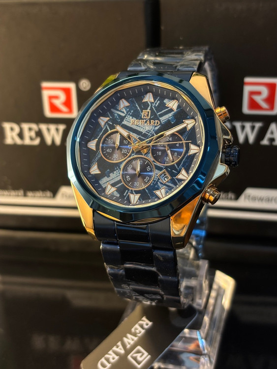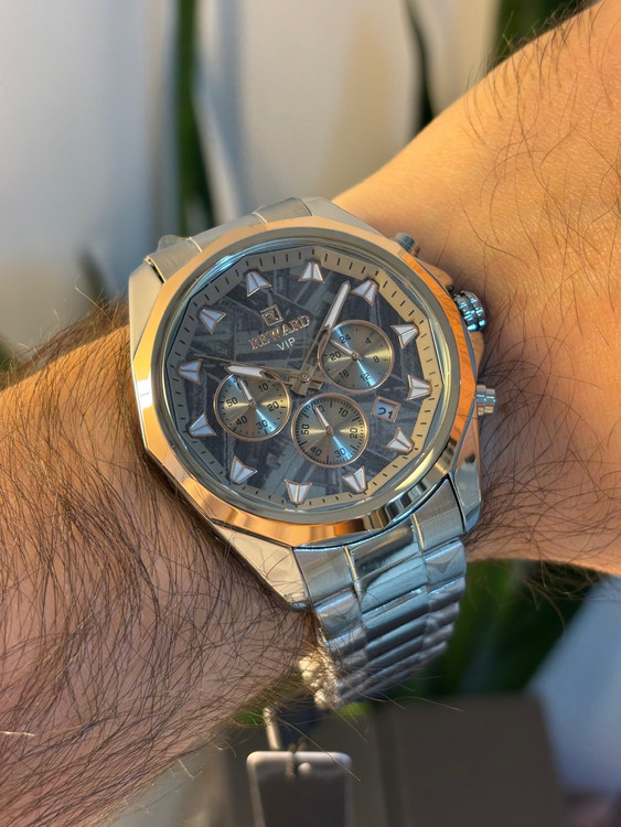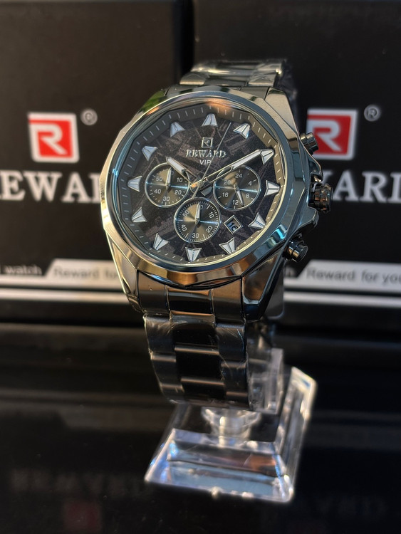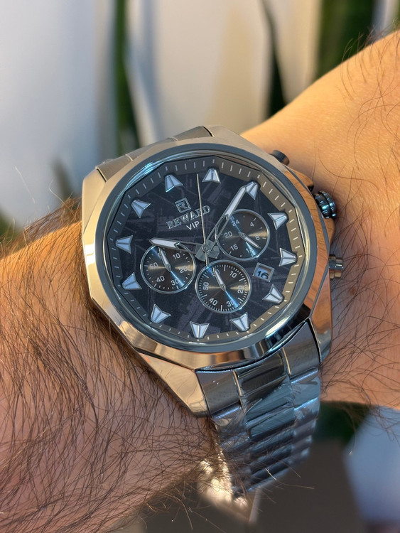 این مدل ساعت از برند ریوارد با باطری کار می کند و موتور آن کوارتز است. همچنین سه موتور آن فعال بوده و کورنوگراف است. نوع شیشه این مدل معدنی می باشدکه باعث مقاومت هرچه بیشتر ساعت شده است.