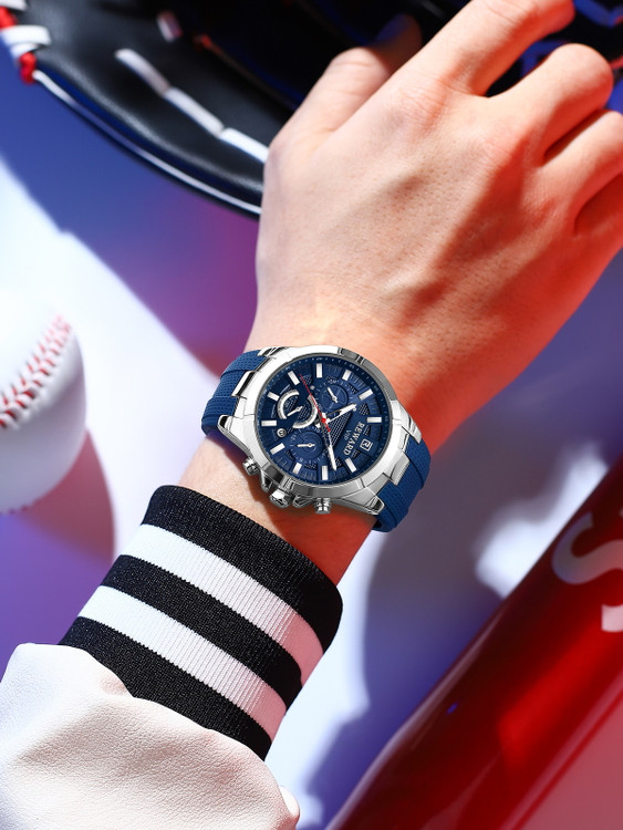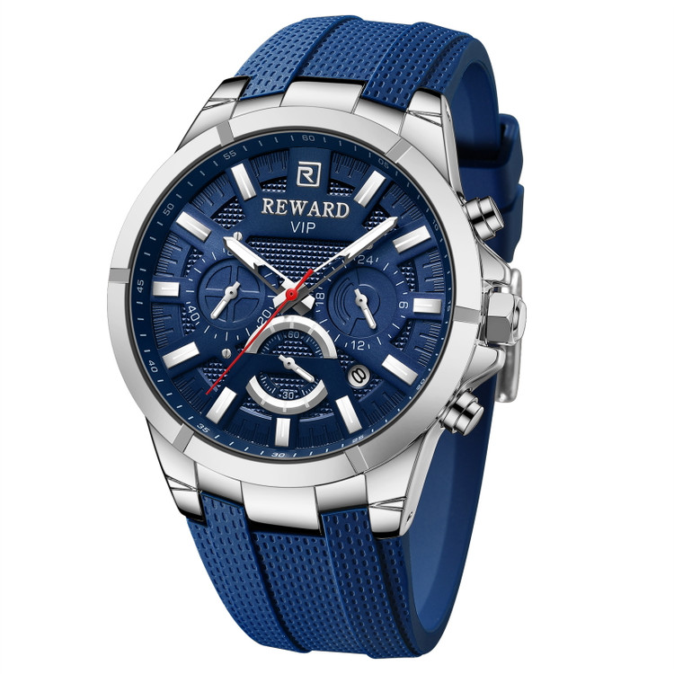 ساعت ریوارد Reward مدل 831512 با استایلی اسپرت و در رنگ سورمه ای طراحی شده است. بند این ساعت از نوع رابر می باشد.