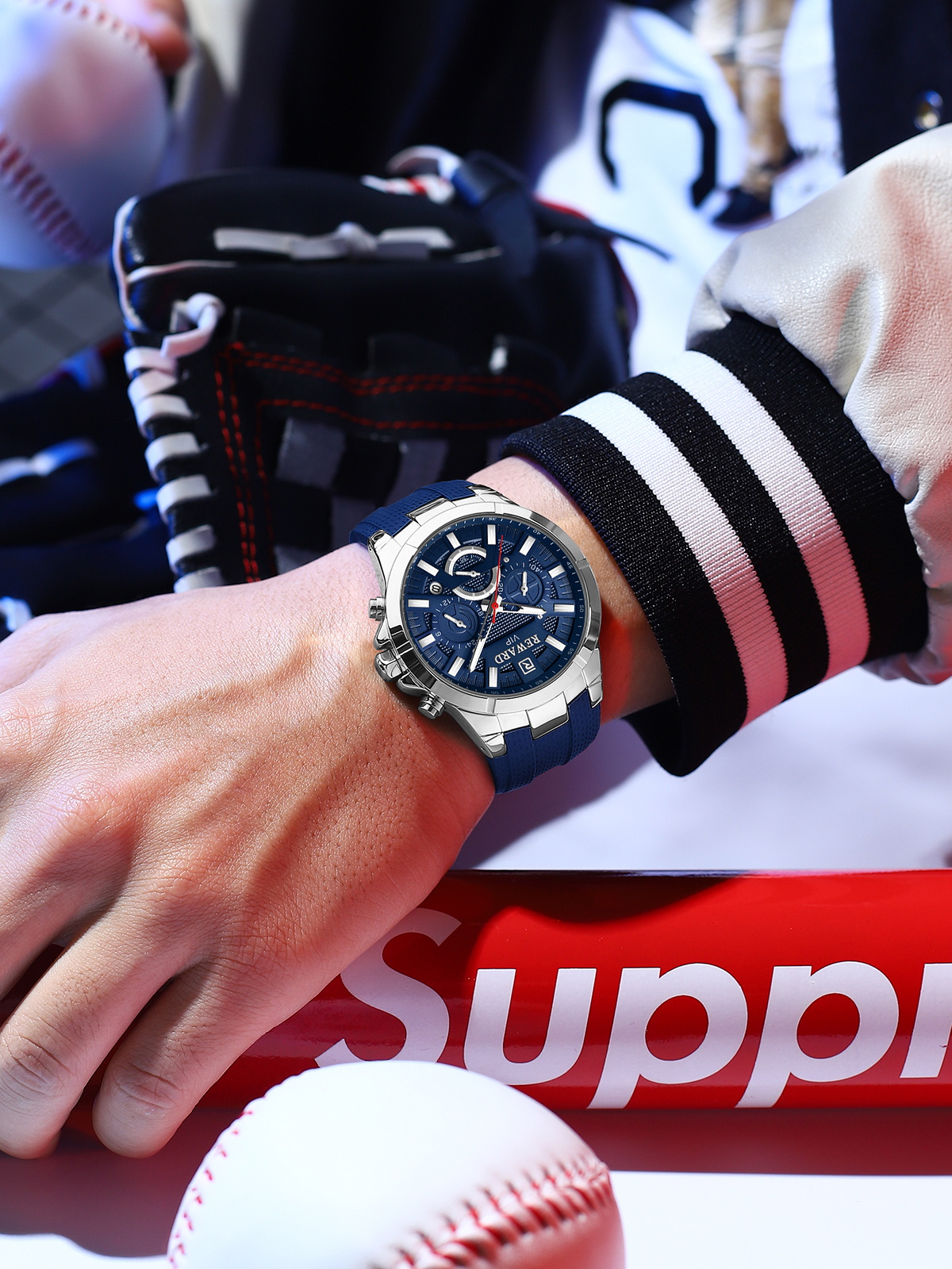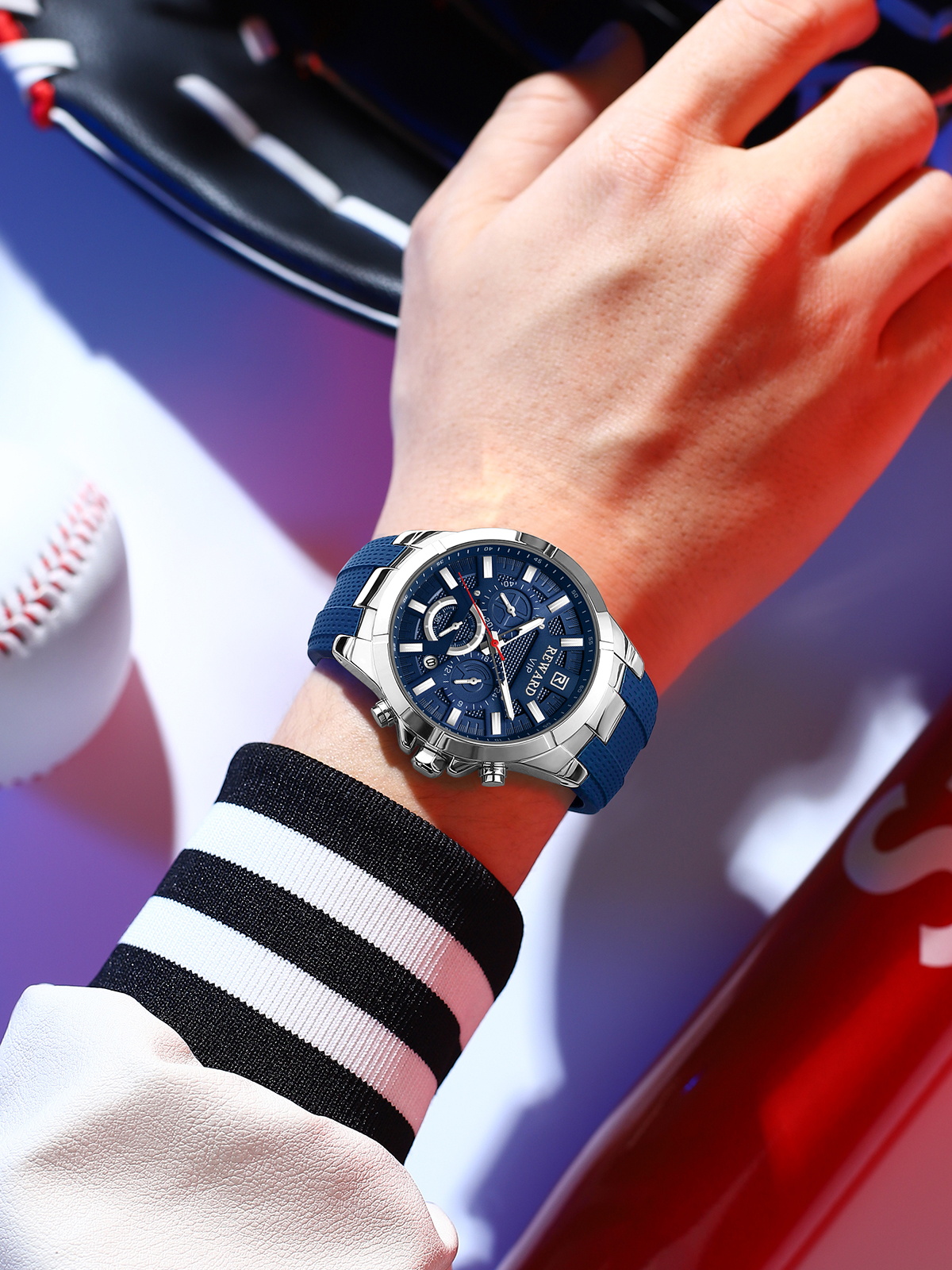 ساعت ریوارد Reward مدل 831512 با استایلی اسپرت و در رنگ سورمه ای طراحی شده است. بند این ساعت از نوع رابر می باشد.