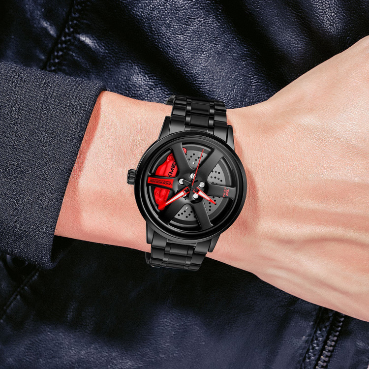 این ساعت خاص با طراحی الهامگرفته از دیسک ترمز و رینگ خودرو، انتخابی متفاوت برای دوستداران سرعت و هیجان است. ترکیب رنگ مشکی مات با جزئیات قرمز، جلوهای مدرن و جوانپسند به این ساعت بخشیده است.