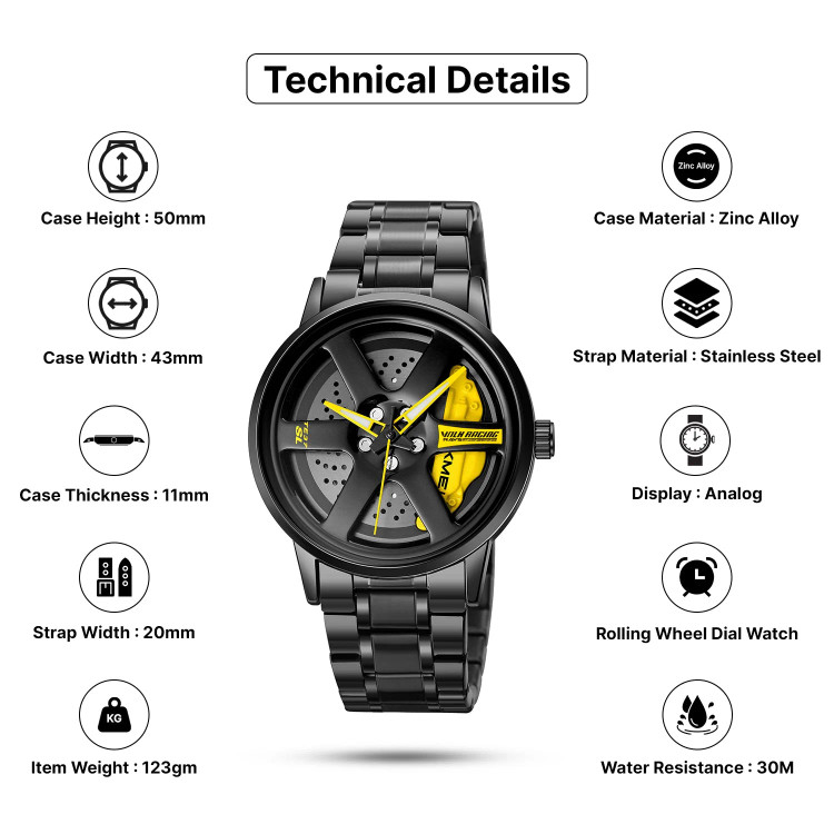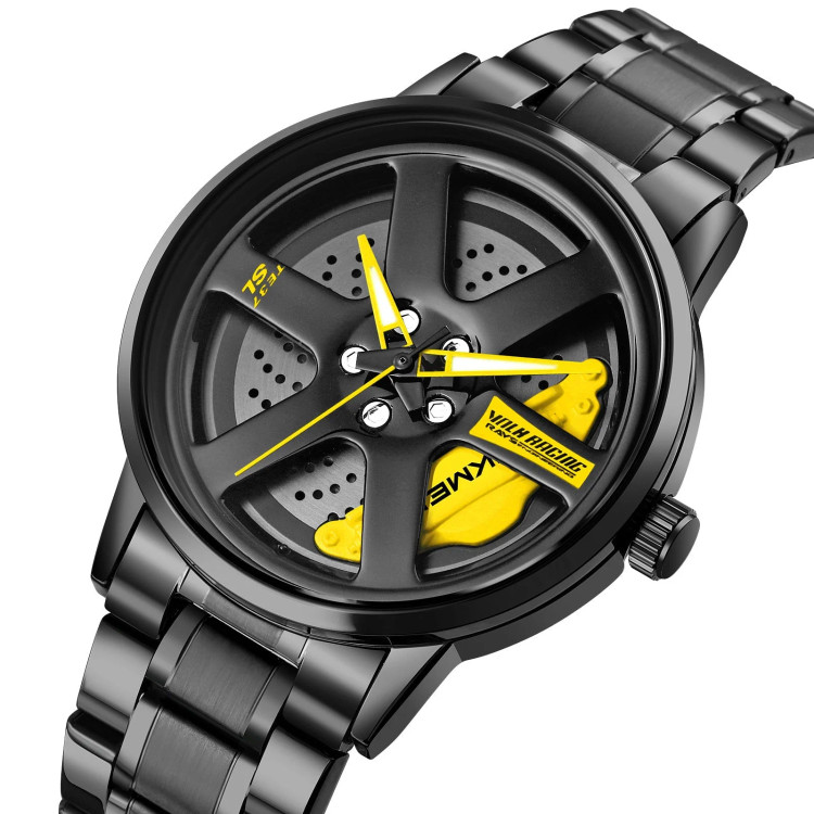 این ساعت خاص با طراحی الهامگرفته از دیسک ترمز و رینگ خودرو، انتخابی متفاوت برای دوستداران سرعت و هیجان است. ترکیب رنگ مشکی مات با جزئیات زرد ، جلوهای مدرن و جوانپسند به این ساعت بخشیده است.