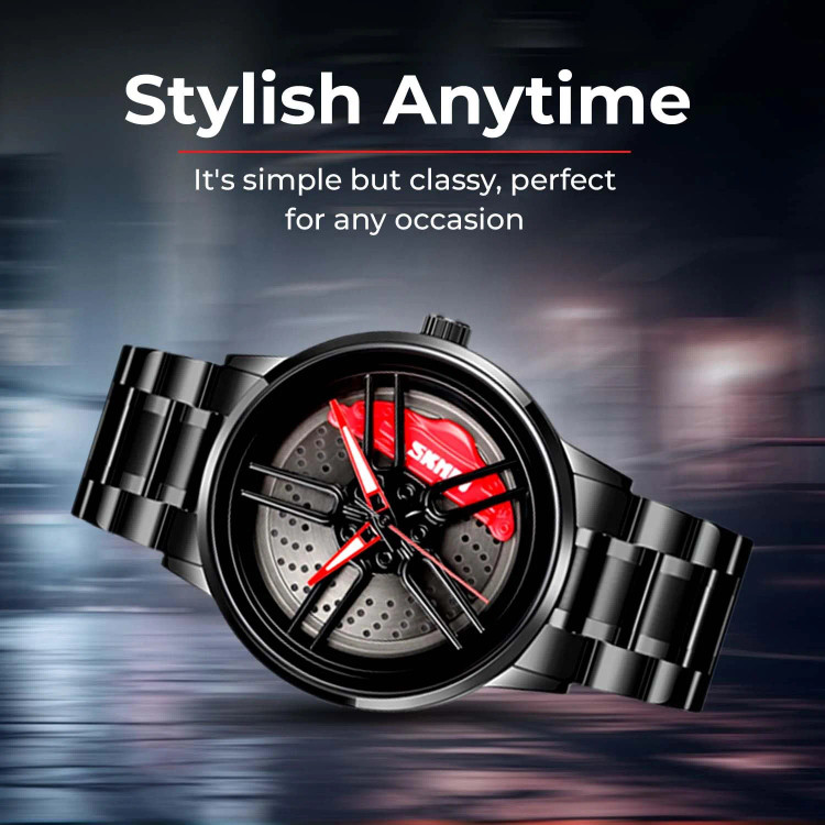 این مدل منحصربهفرد با طراحی الهامگرفته از رینگ و دیسک ترمز خودرو، ترکیبی از هیجان و خلاقیت را به نمایش میگذارد. ویژگی خاص این ساعت، رینگ داخلی با قابلیت چرخش است که حس واقعی یک رینگ اسپرت را منتقل میکند.