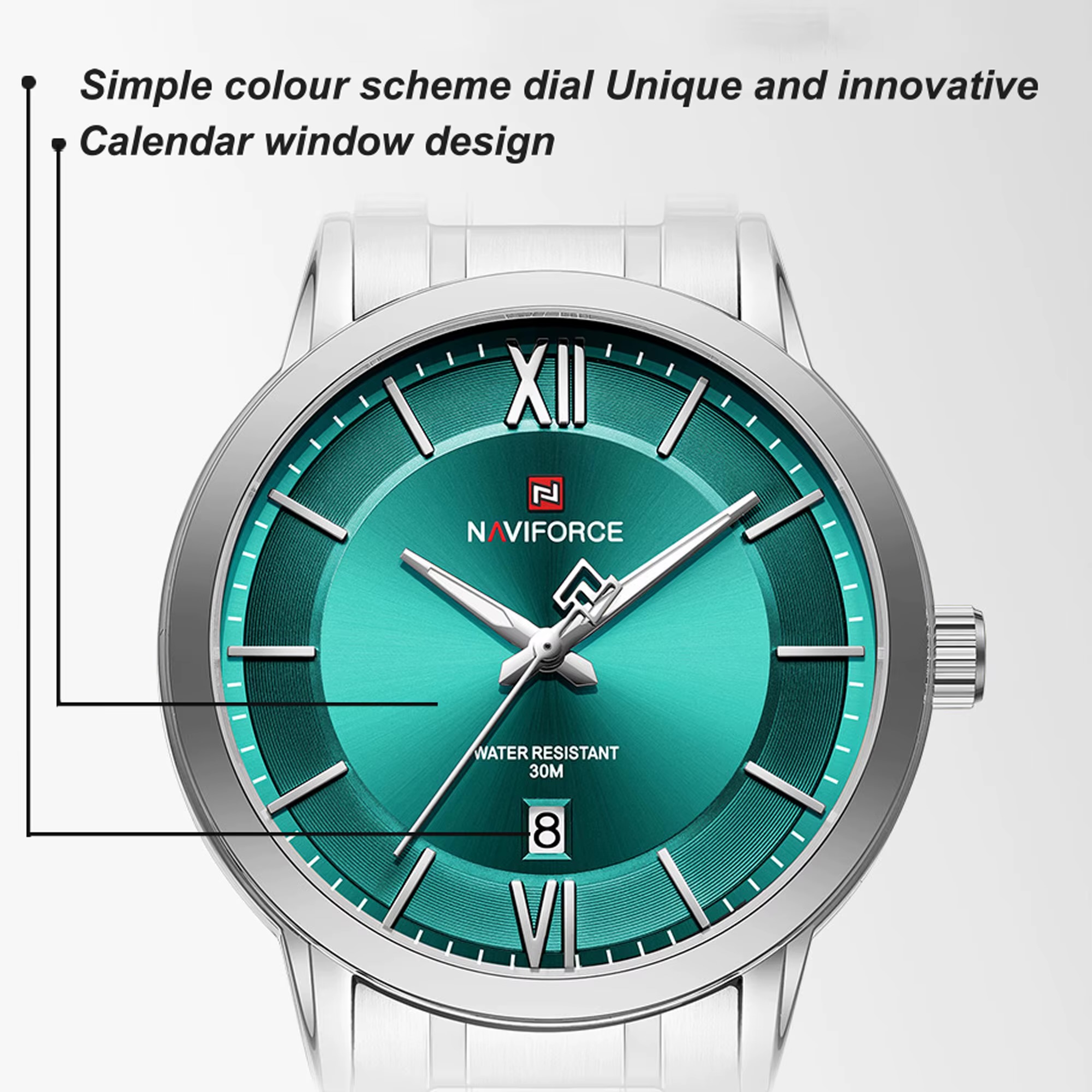 ساعت Naviforce 9254 ترکیبی از طراحی مینیمال و کیفیت عالی است. این ساعت دارای موتور ژاپنی دقیق، بند استیل مقاوم و قفل کلیپسی با عقربه های شب نماست که جلوهای شیک و لوکس به مچ شما میدهد. همچنین این ساعت دارای نمایش تاریخ بوده و برای استفاده روزمره و رسمی مناسب است.