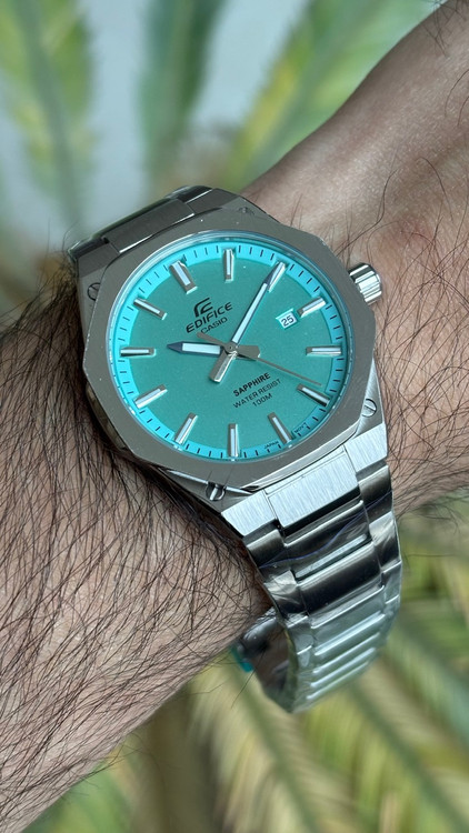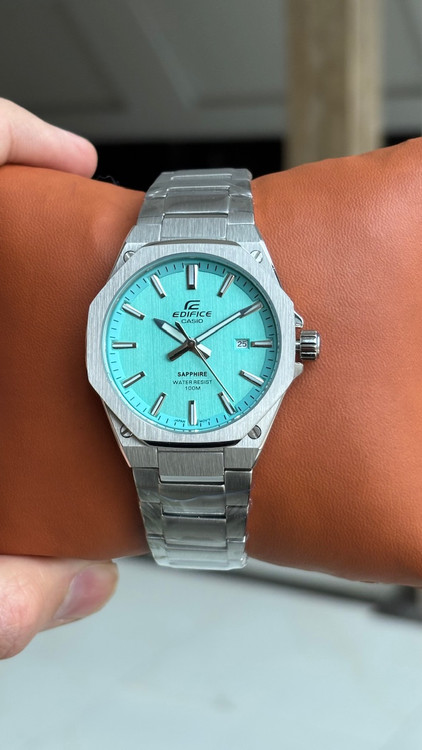 صفحهی تیفانی این مدل با کیفیت بافتی فوق العاده، جلوهای چشمنواز به ساعت داده است. نشانهای ساعت و عقربهها با دقت بالا پرداخت شدهاند و شب نما می باشند.