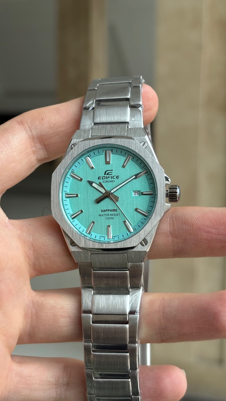 صفحهی تیفانی این مدل با کیفیت بافتی فوق العاده، جلوهای چشمنواز به ساعت داده است. نشانهای ساعت و عقربهها با دقت بالا پرداخت شدهاند و شب نما می باشند.